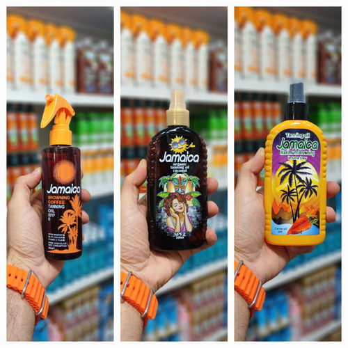 روغن آفتاب برنزه کننده و اسپری جامائیکا