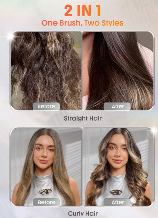 این دستگاه در موهای صاف(ایجاد فرهای لطیف و حجیم) و در موهای موجدار و فر و مواج (ایجاد افزایش نظم و حالت طبیعی) و در موهای فر و ضخیم (با باز کردن گره ها و وز موها)زیبایی خاصی به موهای شما و جذابیت خاص به چهره شما میبخشه.